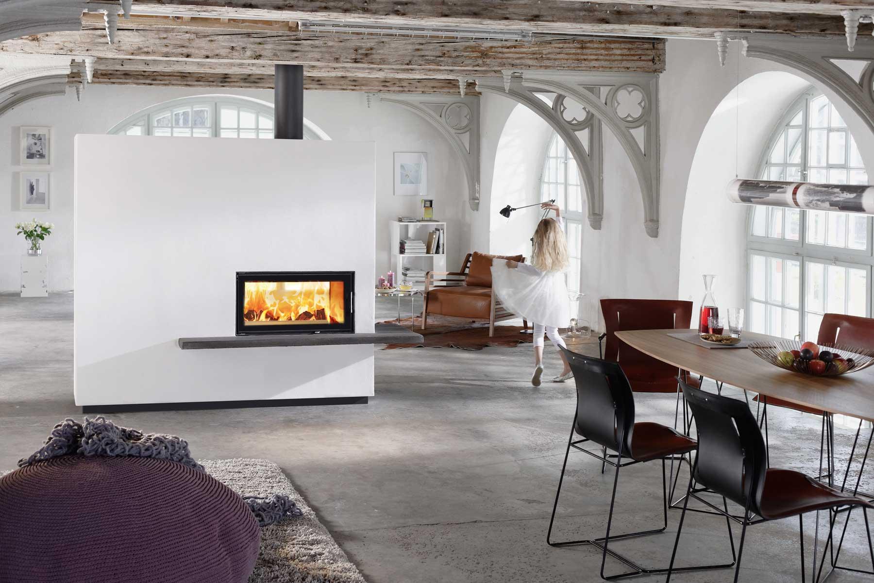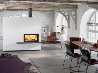 Aufgrund der großen Sichtscheibe ist das Flammenspiel besonders gut zu sehen und bietet einen atmosphärischen Feuergenuss. Optional mit wasserführender Technik zur Unterstützung der Heizung oder zur Aufbereitung von Brauch- und Heizwasser.